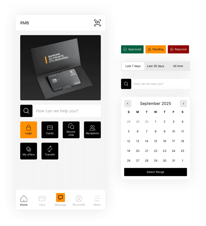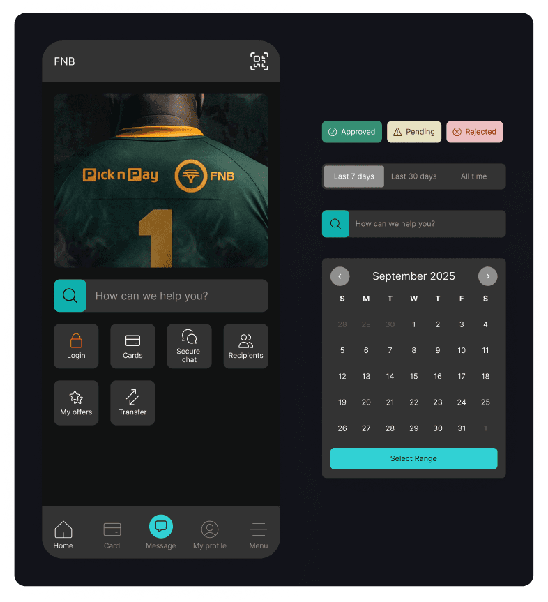 One of the core strengths of the FirstRand App Design System is its ability to switch seamlessly between brands. Each FirstRand brand has its own distinct identity, but the apps are built on one shared foundation. A major challenge was ensuring that switching between brands doesn’t break consistency or force teams to redesign from scratch. To solve this, I built in multi-skin switching using shared variables for colour, typography, and imagery. This allows us to maintain brand individuality while keeping layouts, contrast, and hierarchy consistent. The result is that no matter which app a customer uses, the experience feels familiar while still being true to the brand they trust.
